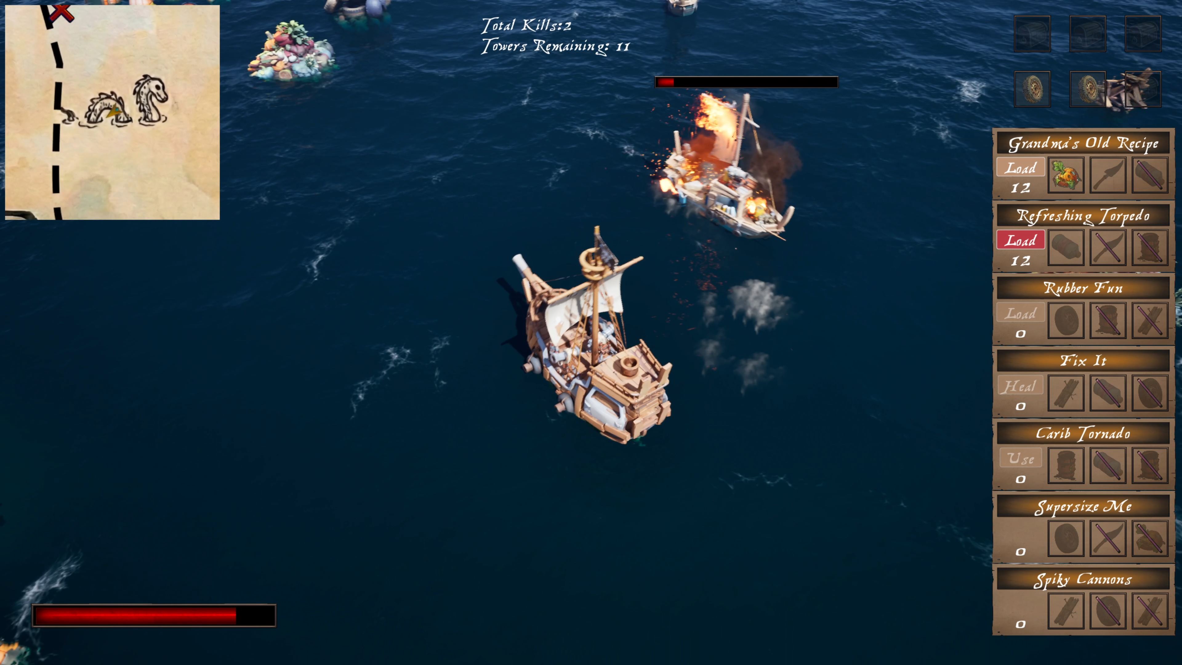 In this game you control a pirate ship. You can catch all sorts of trash from the sea, which you can use to craft ammo, repair your ship, or even upgrade it. Beware the enemy ships!